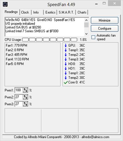 Accessing digital temperature sensors is really useful. Sedangkan fitur utama SpeedFan adalah untuk mengatur kecepatan putaran kipas pada komputer Proccessor GPU Chipset agar sesuai dengan keinginan dan kodisi yang ada sehingga mengurangi kebisingan. SpeedFan berada di puncak daftar software terbaik untuk mengontrol kipas komputer bukan tanpa alasan.